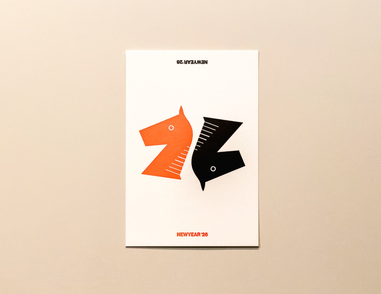2頭の馬の中に「26」を見つけることのできる図案を制作しています。