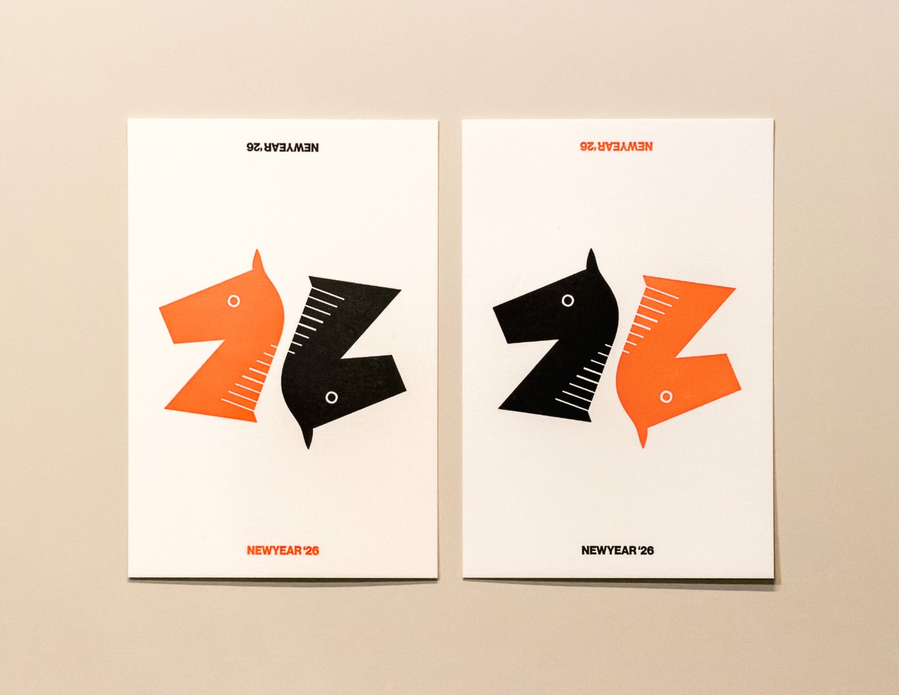 2頭の馬の中に「26」を見つけることのできる図案を制作しています。
